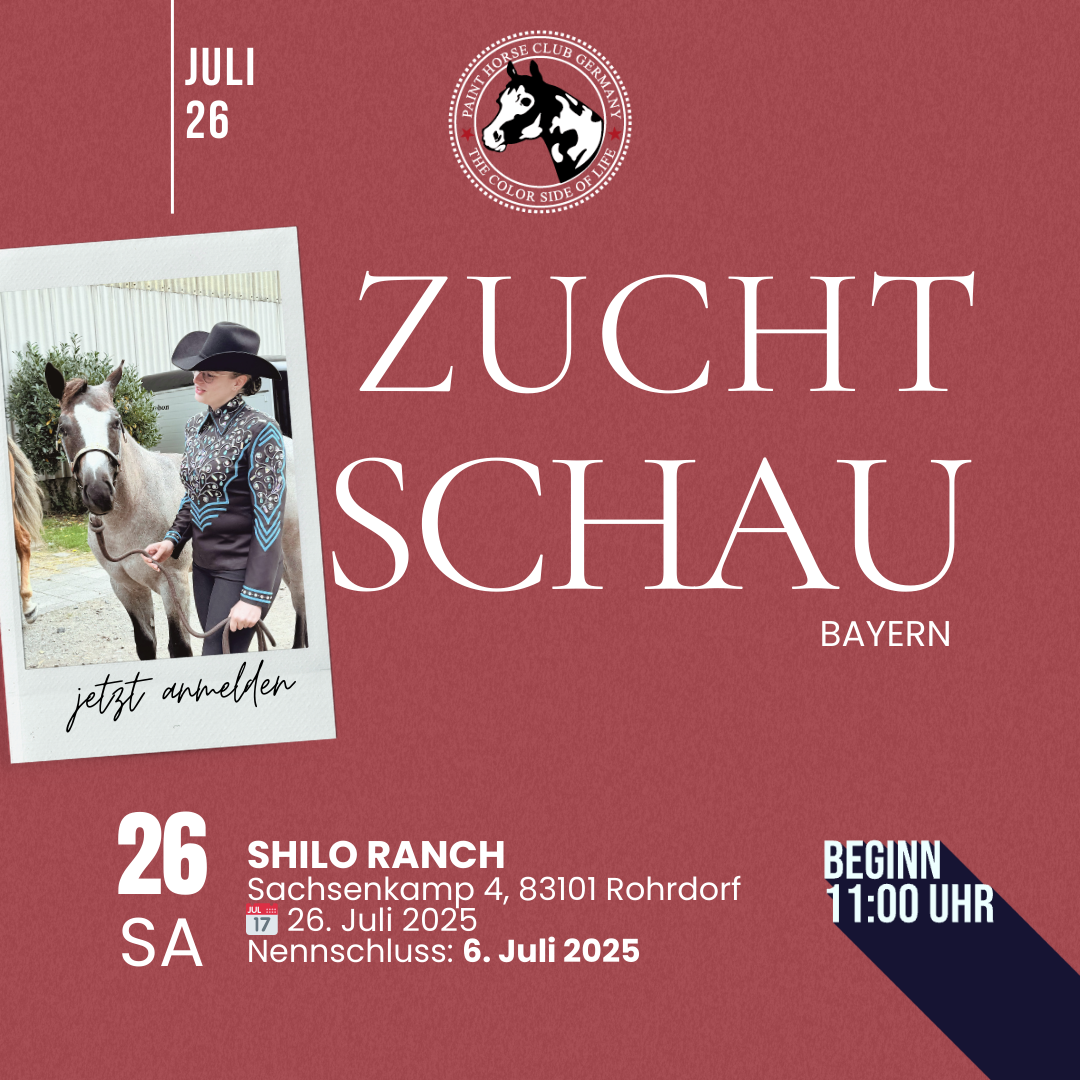 Am 26. Juli 2025 fand in Rohrdorf auf der Shilo Ranch die Zuchtschau des PHCG statt. Zahlreiche Fohlen, Jährlinge und Stuten präsentierten sich dem Zuchtrichterteam und wurden sorgfältig bewertet. Die durchgehend hohen Bewertungen spiegeln die Qualität der vorgestellten Pferde ebenso wider wie das züchterische Engagement, das hinter jeder einzelnen Anpaarung steht.