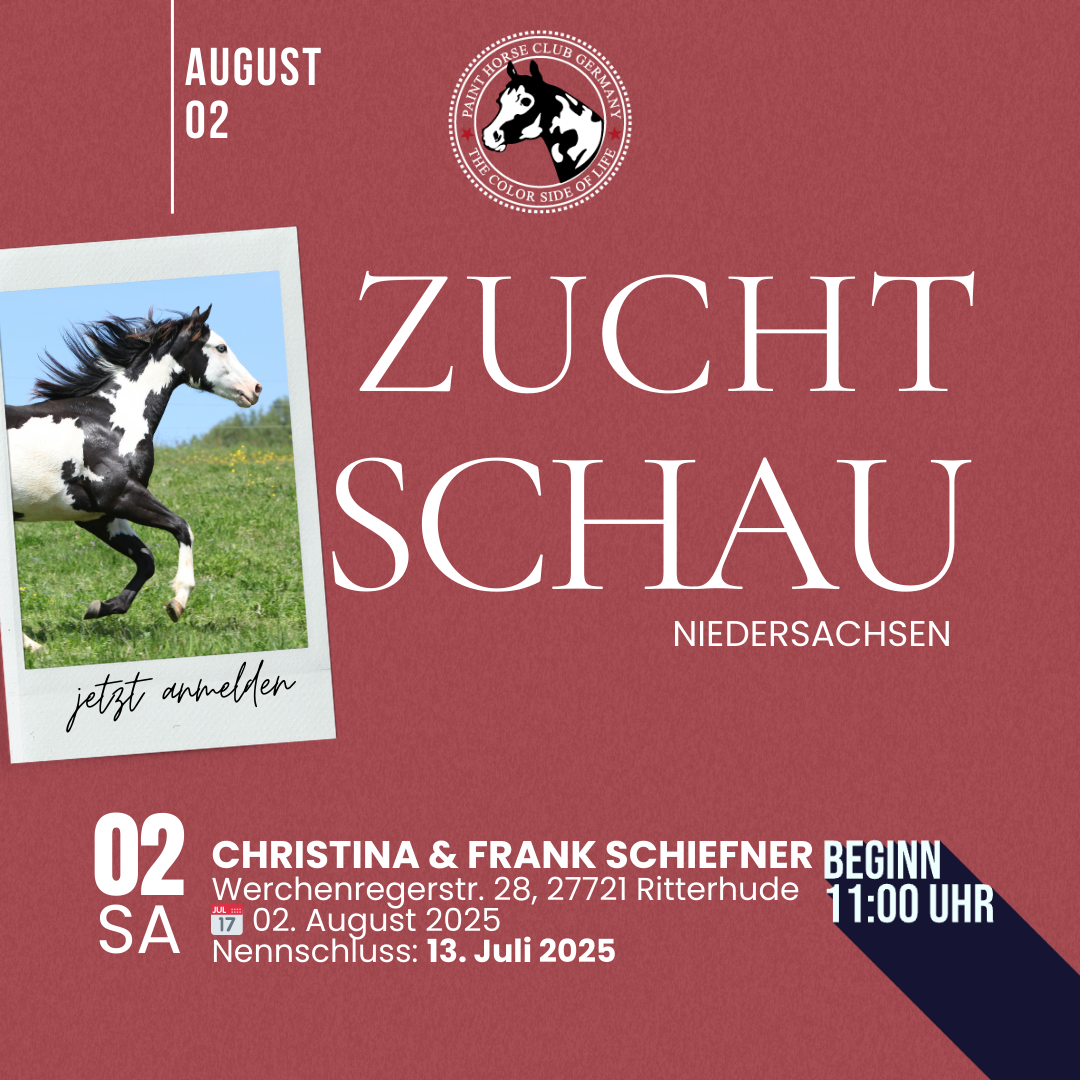 Am 2. August 2025 fand in Ritterhude die niedersächsische Zuchtschau des PHCG statt. Zahlreiche Stut- und Hengstfohlen sowie Stuten und Veredler stellten sich der Bewertung. Die Veranstaltung zeigte eindrucksvoll die Qualität der vorgestellten Pferde und spiegelte die engagierte Arbeit der Züchterinnen und Züchter wider.