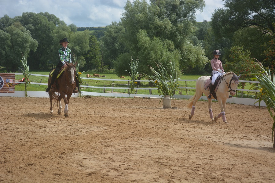 In der Mittagspause zeigten Mia Weber und Jule Stähly ein sehr schönes Pas de Deux: Die 13jährige Mia mit ihrem Dressurpony „Mayflower“ und die 17jährige Jule mit ihrer westerngerittenen Paint Horse Stute „Jacs Lady In Red“. Die beiden jungen Reiterinnen zeigten nicht nur, wie unterschiedlich die Reiterei sein kann, sondern auch welches Outfit zu welcher Reitweise gehört. Familie Stähly organisierte eine Tombola zugunsten der Flutopfer in Rheinland Pfalz, bei der Dank großer Teilnahme diese Woche 300 € gespendet werden. Hauptgewinn war ein Decksprung vom Paint Hengst „Dunit Smokin“, welcher von Martin Schüler aus Ormesheim gesponsert wurde. Hendrik Rumpf freute sich über den Hauptgewinn. Ein Dank geht an alle helfenden Hände, die vor, während und nach der Veranstaltung zum Gelingen beigetragen haben. Ebenfalls ein großes Dankeschön geht an alle Sponsoren, die wieder großzügig Geld- und Sachpreise zur Verfügung gestellt haben.