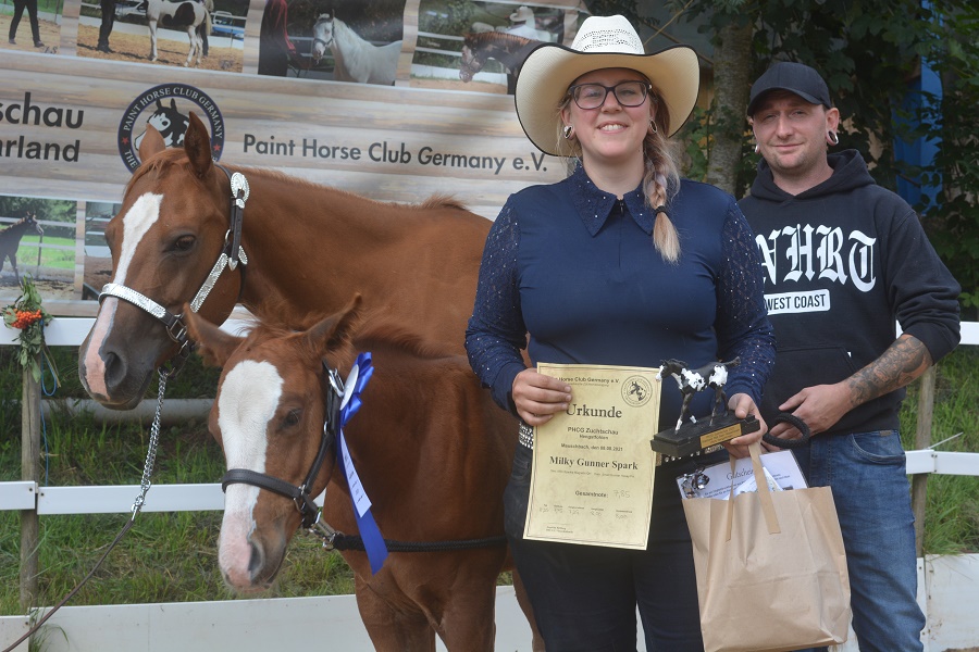 „Milky Gunner Spark“ siegte in der Klasse der Hengstfohlen (ARC Sparkle Magnetic x Smart Gunner Honey), Wertnote 7,85 mit einem knappen Vorsprung vor „Limiteds Big Red King“ (Jacs Limited Edition x Tashina Jeta King) , der mit einer 7,8 bewertet wurde. Das Siegerhengstfohlen ist im Besitz von Stefanie Folz, „Limiteds Big Red King“ wurde von seiner neuen Besitzerin Sharon Eicher aus Krickenbach vorgestellt.